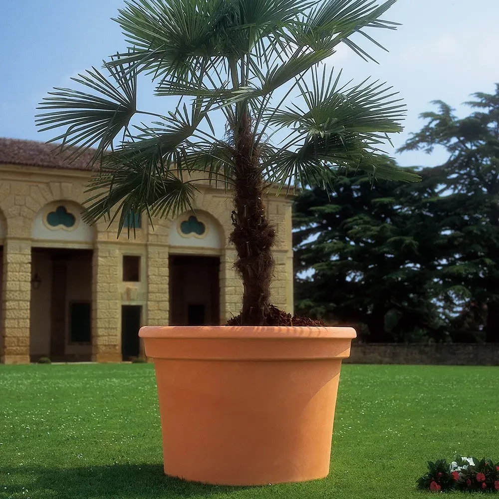Der CILINDRO Pflanzkübel von euro3plast in der Farbe Terra di Siena bringt mit seiner italienischen Terracotta-Optik einen wunderbar mediterranen Flair in Ihren Garten. Für das Urlaubsfeeling zuhause können Sie den Pflanzentopf mit einem kleinen Oliven-Hochstämmchen oder Zitrus-Bäumchen bepflanzen. Aus 100% recyclebaren Polypropylen (PP) hergestellt kann der Topf das ganze Jahr lang im Freien stehen, denn durch seine Herstellung im Rotationsverfahren ist er stabil und bruchfest. Seine Federleichte Bauweise und UV- sowie Temperaturbeständigkeit machen den CILINDRO zu einem idealen Ganzjahrestopf für Ihren Garten.
