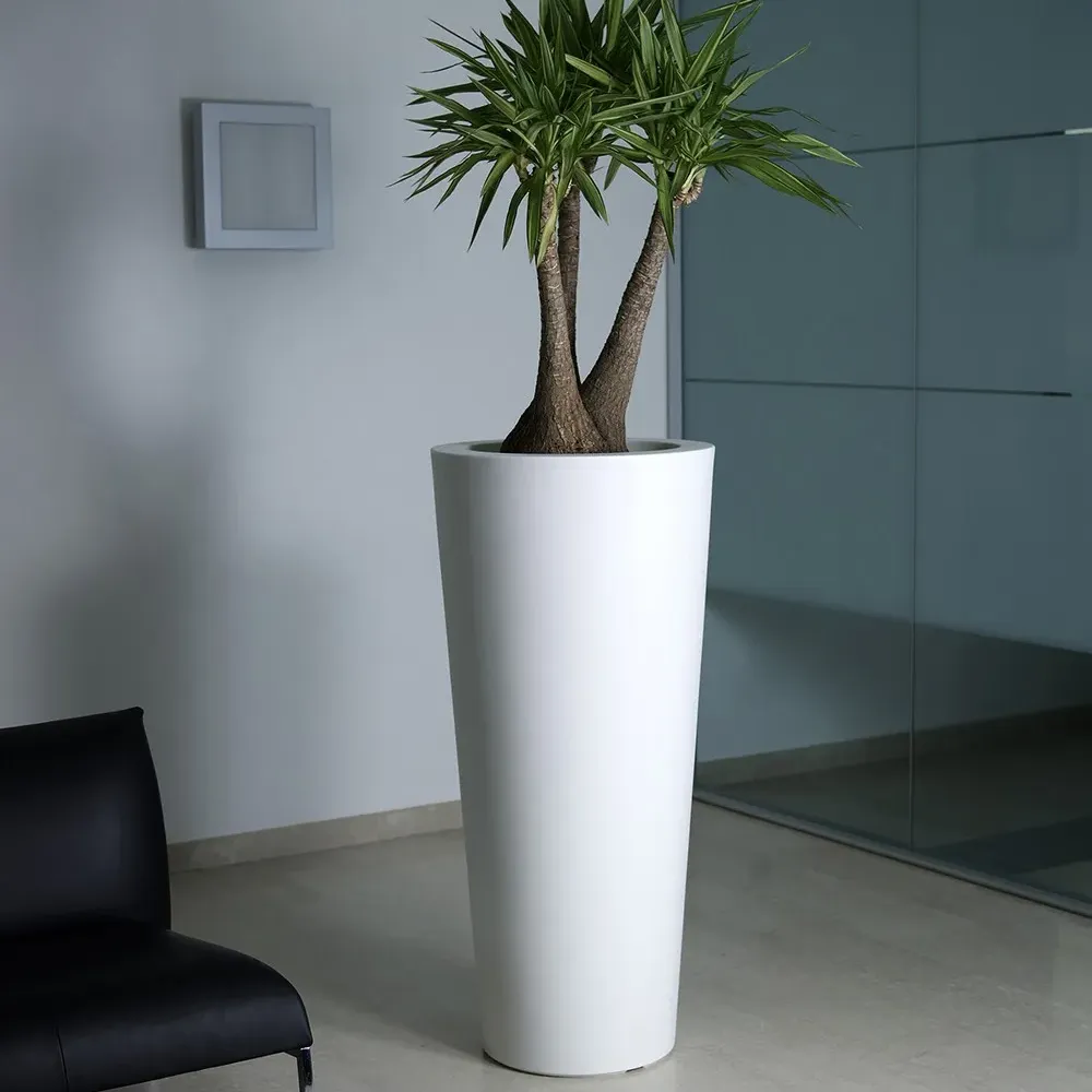 Der elegante Blumentopf ILIE von Euro3Plast überzeugt mit seiner eleganten Form und Höhe, durch die doppelwandige Konstruktion sind Ihre Pflanzen noch zusätzlich vor Hitze und Kälte geschützt. Minimalistisch aber modern, ist der ILIE für den Indoor- sowie auch Outdoor-Bereich bestens geeignet, da er materialbedingt UV- und temperaturbeständig ist. Um dem Pflanzentopf noch zusätzliche Stabilität zu verleihen, können Sie unten am Topf einen Schraubverschluss öffnen und den Innenraum des ILIE mit Sand oder Kies befüllen. Für die Verwendung im Außenbereich müssen vorher unten und im Bereich der Pflanzwanne die vormarkierten Löcher durchgebohrt werden, damit das Wasser ungehindert ablaufen kann. Seine 100%ige Recycelbarkeit machen den ILIE noch zusätzlich nachhaltig. Erkundigen Sie sich auch nach dem passenden Diebstahlschutz.