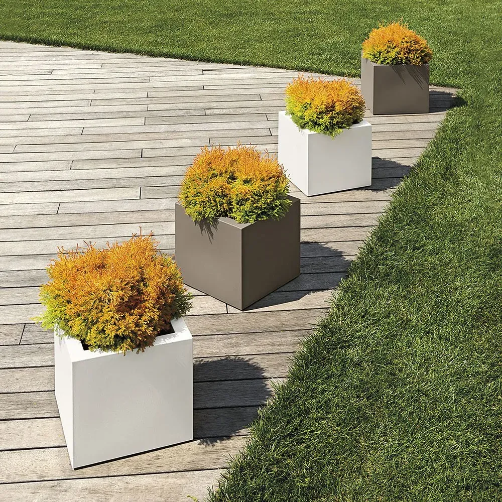 Der doppelwandige KUBE Pflanzentopf von euro3plast schützt Ihre Pflanzen durch seine Bauweise gegen Hitze und Kälte. Außerdem ist er selbst durch seine Temperatur- und UV-Beständigkeit sowie Stoßfestigkeit für den Indoor und Outdoor Bereich gleichermaßen geeignet. Optional ist ein Bewässerungseinsatz inklusive Blähton für den KUBE Pflanzkasten erhältlich, so wird Pflanzenpflege und optimale Bewässerung ein Kinderspiel. Mit seiner schlichten und einfachen Linienführung sowie natürlichen Farbpalette ist der KUBE ein subtiler Pflanzentopf um Ihren Garten, Balkon oder Wohnraum zu verschönern. Dieser Pflanzkasten besteht aus 100% recycelbarem lldpe (linear low-density polyethylene) und ermöglicht so eine nachhaltigere Alternative zu Pflanzentöpfen aus anderen Materialien.