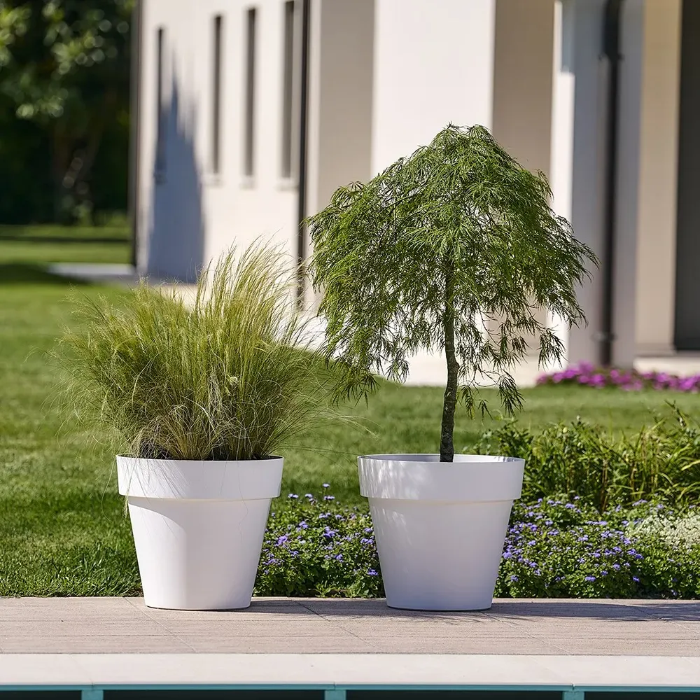 Aus 100% recycelbaren Polypropylen hergestellt, ist der MITU PAC von euro3plast mit seiner klassischen Form in den unterschiedlichsten Größen erhältlich. Von kleinen aber feinen 20cm Durchmesser bis zu einer eindrucksvollen Größe von 100cm Durchmesser ist dieser Pflanzentopf vielseitig einsetzbar. Durch seine UV- und Temperaturbeständigkeit können Sie den MITU PAC Pflanzentopf auch unbesorgt das ganze Jahr über draußen stehen lassen. Durch seine Stoßfestigkeit haben Sie so einen lang haltbaren und damit nachhaltigen Pflanzentopf, der mit seiner elegant matten Oberfläche und natürlicher Farbauswahl fast überall einsetzbar ist. Mit Ablauflöchern versehen um Staunässe zu vermeiden müssen Sie sich in Kombination mit einem passenden MEDEA Untersetzer keine Sorgen mehr machen, denn durch die Löcher kann überflüssiges Wasser ablaufen und in dem Untersetzer in kleinen Mengen wie bei einem Wasserspeicher bei Bedarf wieder von der Pflanze aufgenommen werden.